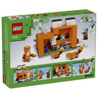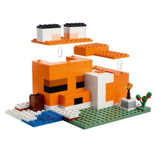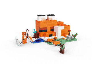 Use your Minecraft skills to build a toy house designed like a sleeping fox. The structures open back and lift-off roof make it easy for them to arrange the furniture and enjoy imaginative roleplay inside. Outside there is a baby fox, adult fox, and Arctic fox to feed with berries before the animals curl up to sleep. 193 pieces. Age: 8+