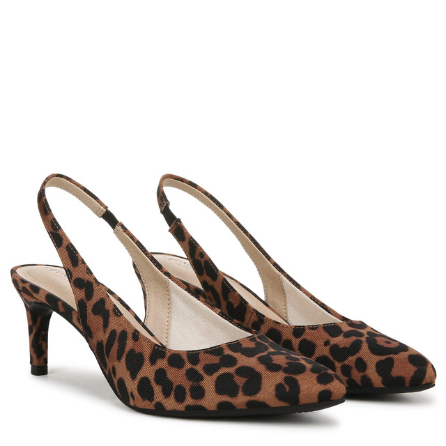 The classic slingback with a modern twist. Wear these comfortable womens heels and take your day with confidence. The Annalise is made with faux leather or microfiber upper, softly pointed toe, and slingback strap with built-in stretch for the perfect fit. Included linings crafted from partially recycled materials. Soft System® comfort package provides all-day support, flex, and cushioning. Traction sole for extra stability. Just Right Height 2. 38-inch heel.