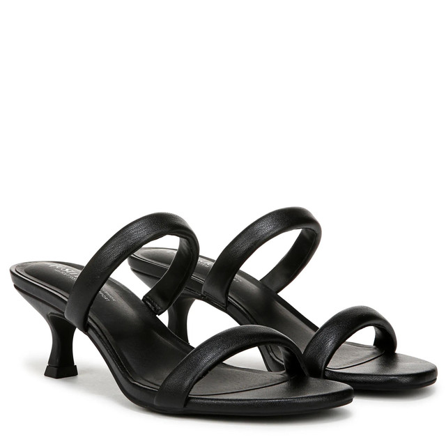 Take it to the next level in our Nalani Strappy Dress Sandals. They feature a faux leather or fabric design, an open round toe, slip-on fit, puffed padded straps, on-trend hourglass-shaped heels, linings crafted from partially recycled materials, Trusted Soft System® comfort technology for unmatched cushion, support and flexibility, and traction soles for extra stability. Just Right Height 2.25 in. heel.