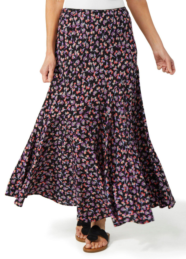 This womens ditsy floral maxi skirt is made of 100 percent rayon for a soft and breezy feel. Featuring a delicate floral print, elastic waistband and a graceful 37 inch length, it offers effortless style perfect for warm weather days.
