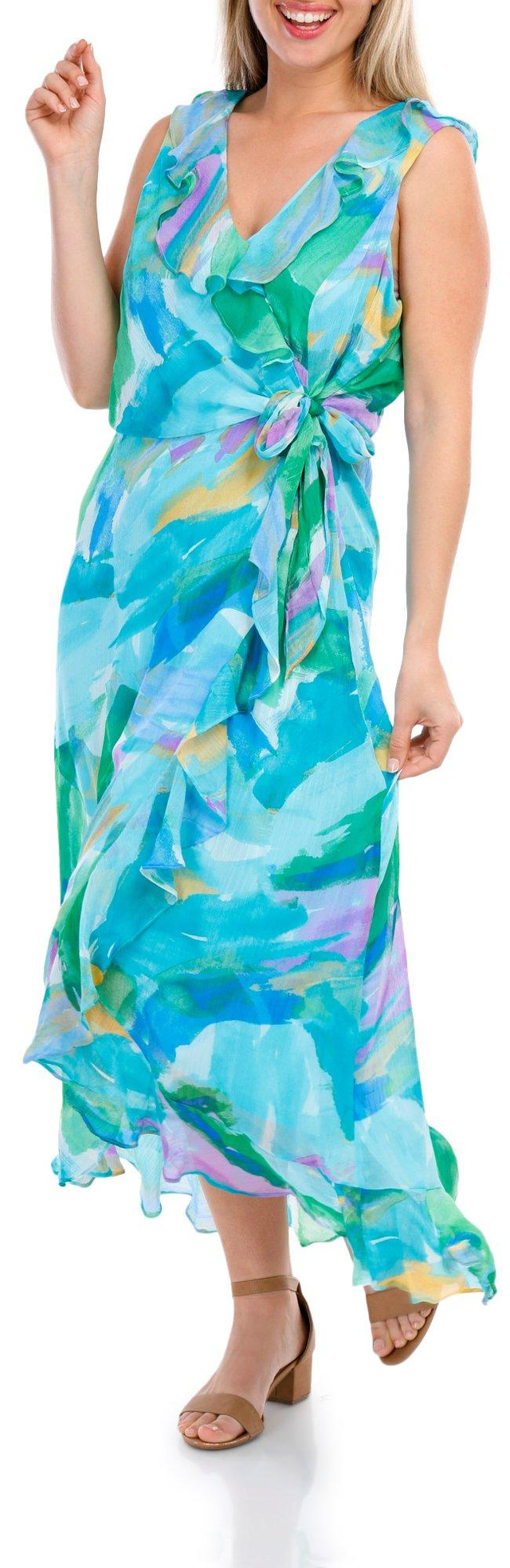 Introducing the Women's Side Tie Ruffle Wrap Dress, crafted from 100% premium fabric. This elegant dress features a stylish ruffle side tie and wrap design, complemented by a flattering v-neckline and sleeveless cut. With a length of 53 inches, it's perfect for any occasion, offering both comfort and sophistication.