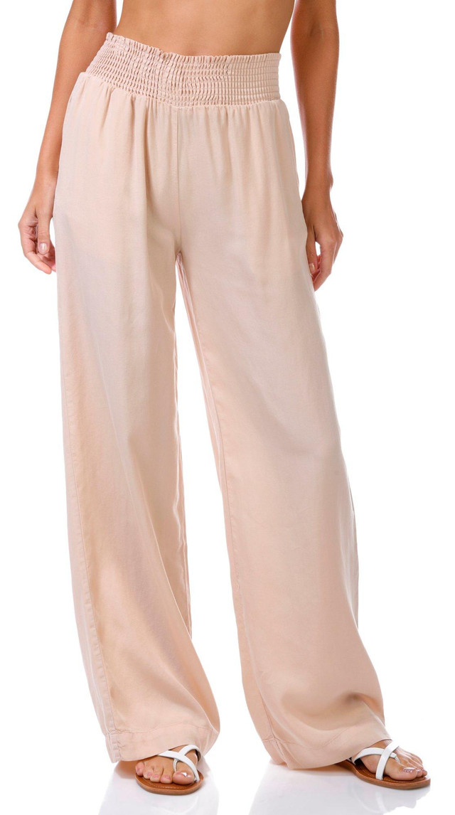 Elevate your casual style with our Juniors Tencel Smock Waist Pants. Made from 100% tencel, these pants offer a soft and breathable fit. The stylish solid color makes them versatile for any outfit, while the elastic waistband ensure comfort and security.