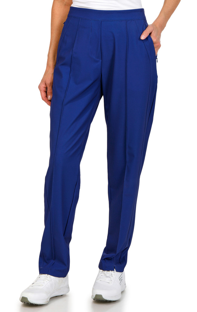 These womens pants deliver easy style and smooth comfort with a sleek front and effortless movement. This design features two front pockets and two back pockets with secure zippered closure for grab and go convenience. This look keeps essentials close and your day moving with clean lines and a polished finish. Inseam is approximately 30 in. Fabrication is 84% polyester and 16% Lycra.