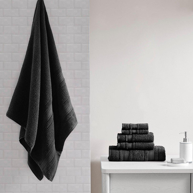 Refresh your bathroom with the Madison Park Spa Waffle Cotton Towel Set. Crafted from 100% cotton, this 6-piece set features a textured waffle jacquard design with a velour dobby cuff for a modern touch. The 600gsm weight offers softness, lightweight comfort, and quick-drying performance. Perfect for daily use and easy care, this solid color towel set adds spa-like luxury to your space. Machine washable for easy care.