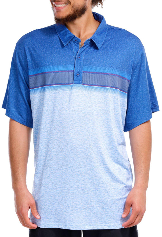 Elevate your activewear with this Short Sleeve Color Block Performance Polo Tee. Designed for ultimate comfort and style, this tee features UPF protection to shield you from harmful UV rays, while its stretch fabric ensures a perfect fit. The moisture-wicking technology keeps you dry and fresh, making it ideal for any activity. The print color block pattern adds a modern touch, making this polo tee a versatile addition to your wardrobe. Fabrication is 89% polyester, 11% spandex.