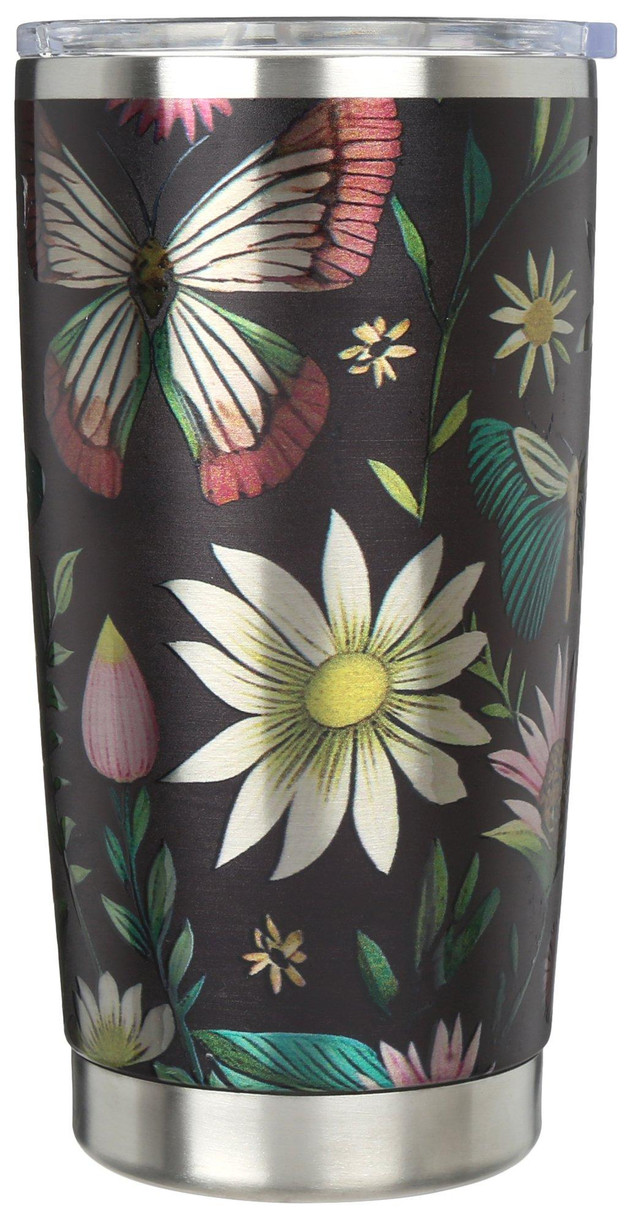 Meteor drinkware and accessories are durable and reliable with a splash of artwork that makes them stylish as well. This travel tumbler keeps drinks hot or cold longer, reduces condensation, and features a moth design. Spill-proof lid included. Holds 20 oz.