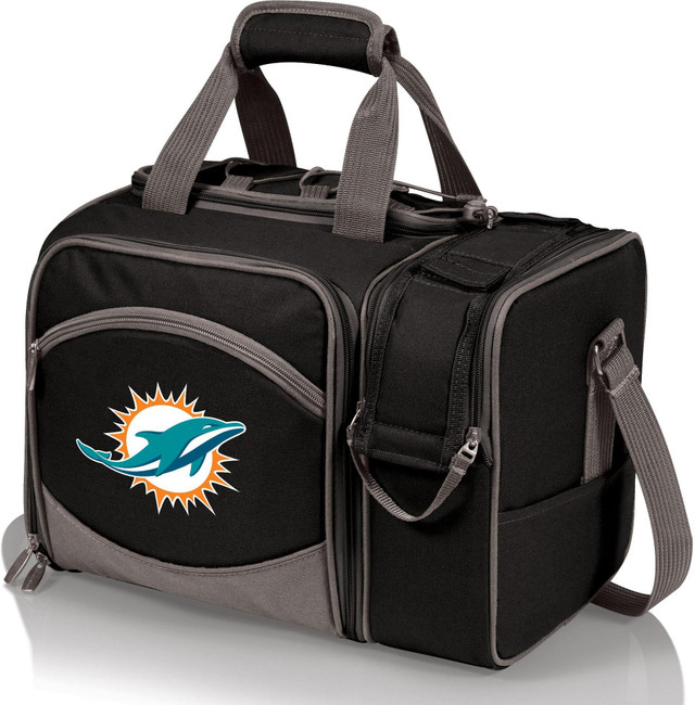 The Malibu Picnic Tote includes: (2) 9'' melamine plates, (2) 8 oz. wine glasses, (4) 14'' cotton napkins, (2) stainless steel forks, knives, and spoons, (1) 6'' x 6'' cutting board, (1) stainless steel cheese knife, and (1) stainless steel corkscrew. Measures: 15'' x 9'' x 11''.