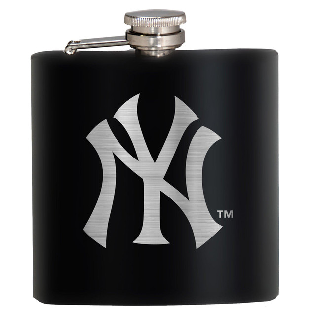 Show your team spirit! This New York Yankees Stealth Hip Flask, made of kitchen-grade 18/8 stainless steel, holds 6 fluid ounces. It is powder-coated in a black matte finish and features laser-etched team graphics. Measures 3.75 in. x 1 in. x 4.25 in.