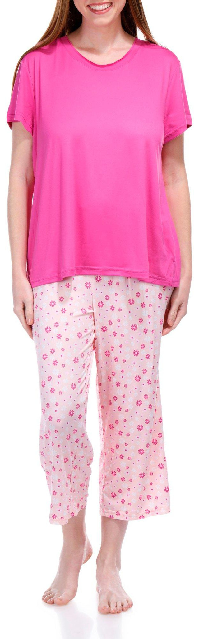 Introducing the Women's 2 Pc Capri Sleepwear Set, crafted from a comfortable blend of polyester and spandex. This set features a solid short sleeve top paired with floral print capri pants, offering both style and ease. Perfect for lounging or sleeping, this set combines beauty and comfort, making it a delightful addition to your sleepwear collection.