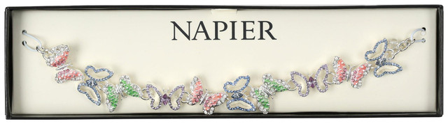 The Napier 7-inch Butterfly Charm Bracelet features a delicate chain adorned with charming butterfly accents, adding a whimsical and feminine touch to your wrist. The intricate design, combined with a subtle, polished finish, makes it perfect for both casual and formal wear. This bracelet is a sweet and elegant accessory, adding a playful yet sophisticated flair to any outfit.