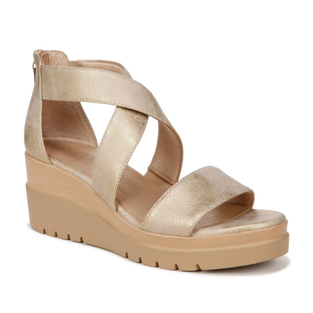 Your summer looks will get a whole lot stylish with these Goodtime platform wedge sandal. The sporty bottom and cork trim wedge are topped with a strappy upper. Antimicrobial socklining and memory foam with arch support boost your comfort.