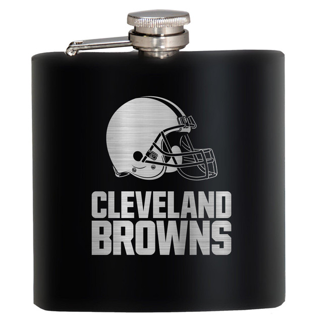 Show your team spirit! This Cleveland Browns Stealth Hip Flask, made of kitchen-grade 18/8 stainless steel, holds 6 fluid ounces. It is powder-coated in a black matte finish and features laser-etched team graphics. Measures 3.75 in. x 1 in. x 4.25 in.