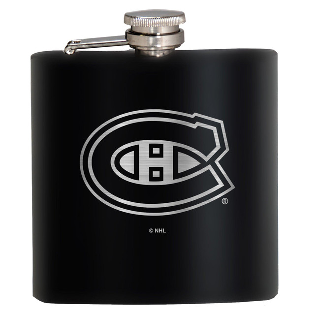 Show your team spirit! This Montreal Canadiens Stealth Hip Flask, made of kitchen-grade 18/8 stainless steel, holds 6 fluid ounces. It is powder-coated in a black matte finish and features laser-etched team graphics. Measures 3.75 in. x 1 in. x 4.25 in.