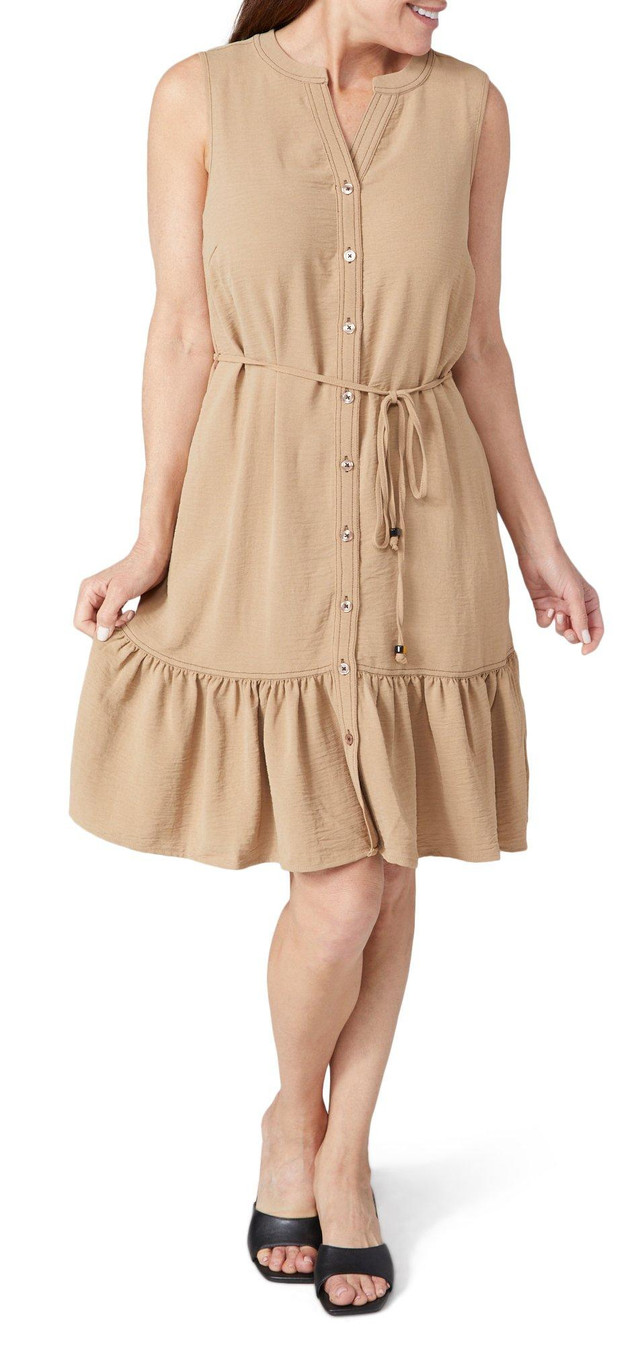 Discover effortless style with this Sleeveless Midi Dress. Featuring a classic buttoned front and double side pockets, this dress combines practicality with elegance. The accent stitching and waist tie add a touch of practicality and sophistication, making it perfect for any occasion. Embrace the blend of comfort and style with this versatile and chic midi dress.
