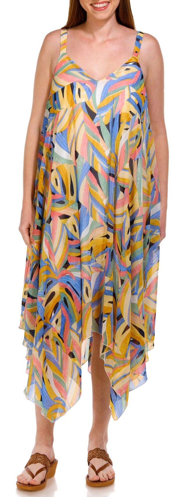 Absolutely Famous Womens Sleeveless Chevron Tiered Dress