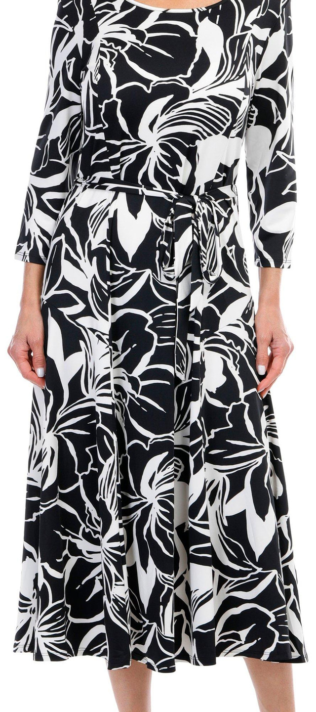 Introducing the Women's 3/4 Sleeve Sylvia Midi Dress, crafted from a comfortable blend of polyester and spandex. This chic dress features a stylish print pattern, a flattering waist tie, and a classic round neckline. Its midi length offers a perfect balance of elegance and ease, making it a versatile addition to any wardrobe. Ideal for both casual outings and special occasions, the Sylvia Midi Dress is designed to make you look and feel fabulous.