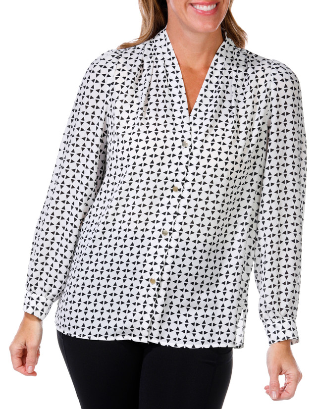 Simple, stylish, and easy to wear, this long sleeve button-down top is made from 100% polyester for a smooth, lightweight feel. Perfect for everyday outfits, it offers a relaxed fit with classic button detailing. Machine wash and drip dry.