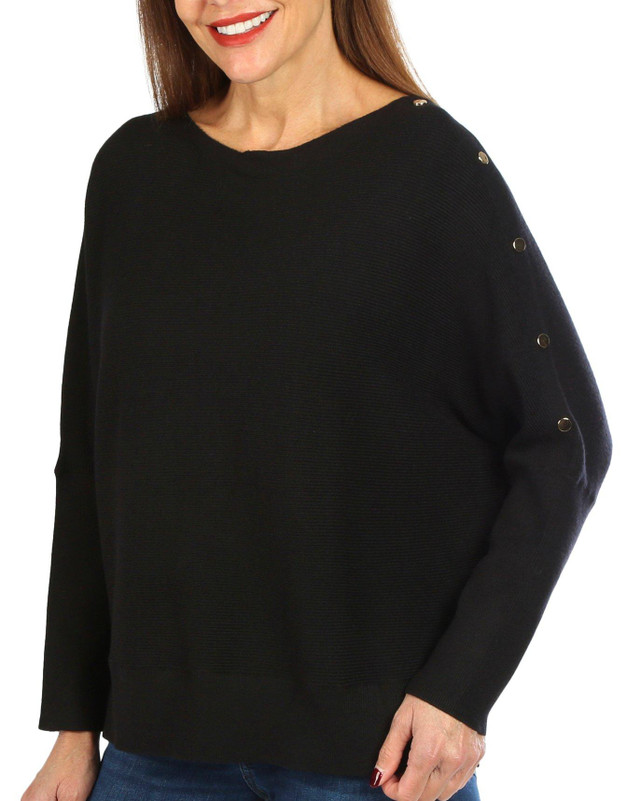 Introducing the Solid Dolman Snap Button Sweater, a perfect blend of comfort and style. Made from a high-quality blend of polyester, nylon, and viscose, this sweater offers a soft and cozy feel. It features a chic solid color that complements any wardrobe, with stylish button accents on the shoulder adding a touch of elegance. Ideal for any occasion, this versatile piece will quickly become a favorite in your collection.