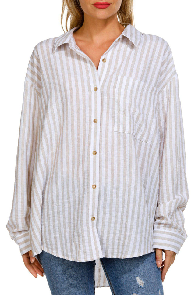 Elevate your style with our Juniors Striped Long Sleeve Top, crafted from 100% polyester for a comfortable fit. This chic top features a timeless striped print, a button-down front, long sleeves, and a classic collared neckline. With a top length of 26 inches, it's perfect for pairing with your favorite jeans or skirts for a versatile look. Ideal for casual outings or a day at the office, this top combines fashion and functionality effortlessly.