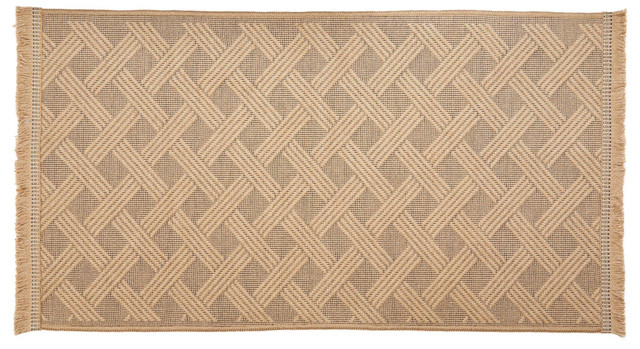 Introducing the Washable Jute Accent Rug, a perfect blend of elegance and practicality. This rug features a beautiful diamond-stitched pattern that adds a touch of sophistication to any room. The fringe edges provide a charming, rustic finish. Made from durable jute, this rug is not only stylish but also easy to maintain, as it is fully washable. Measures 26 in x 49 in.
