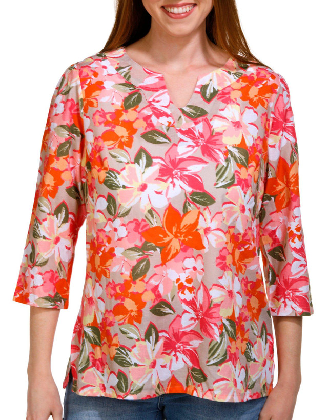 The Printed Linen Split Neck 3/4 Puff Sleeve Top is made from a soft and breathable blend, offering a lightweight and comfortable fit. The split neck design and 3/4 puff sleeves provide a classic yet modern touch, while the vibrant print adds style and personality. Ideal for casual outings or layering, this top combines comfort and fashion effortlessly. Measures approximately 27 in. Fabrication 40% cotton, 30% Tencel, 30% linen.