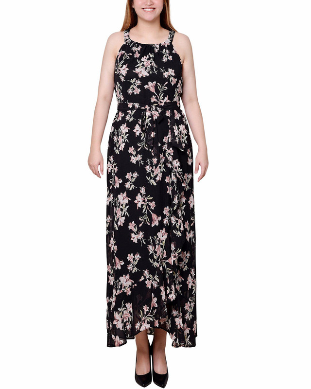 Turn heads at your next event with this elegant chiffon maxi dress. Featuring a sophisticated Grecian halter neckline, this sleeveless dress is designed for a party or special night out. The back zipper ensures a seamless fit, while the belt accentuates your waist. Fully lined for comfort, this dress combines elegance and sophistication, making it the perfect choice for any memorable occasion. Length 55 in. Fabrication 100% polyester.