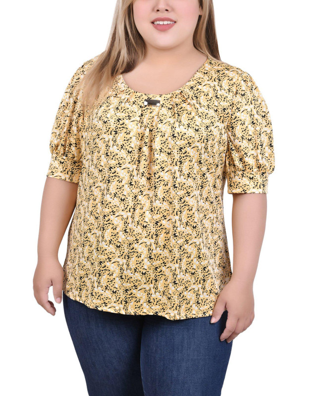 NY Collection Plus Short Sleeve Balloon Sleeve Top