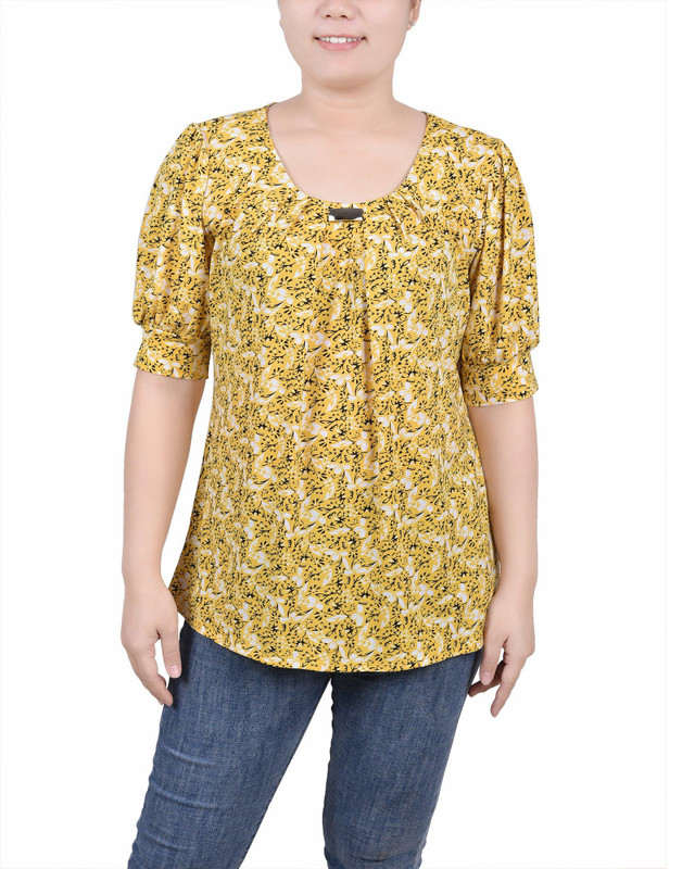 NY Collection Womens Short Sleeve Balloon Sleeve Top