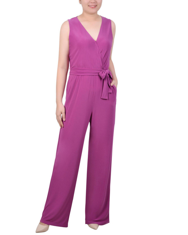 This luxe-looking petite jumpsuit from NY Collection is all about relaxed glamour -- try it with an armful of bangle bracelets or a dramatic pendant necklace!