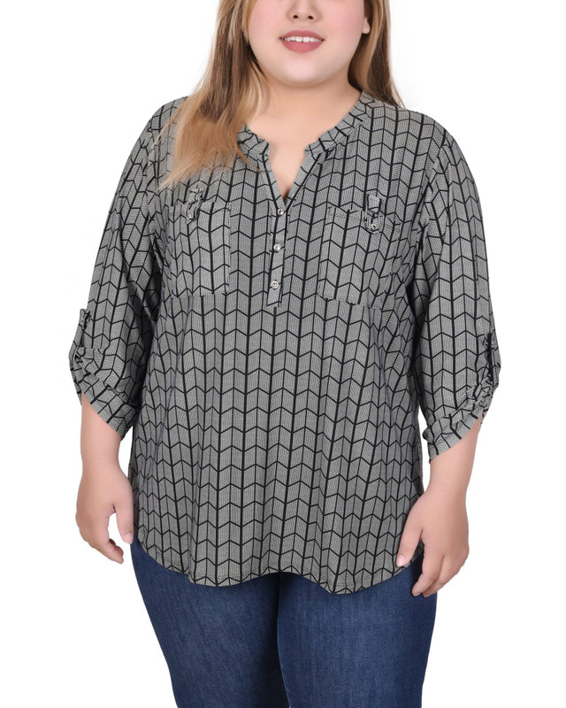 NY Collections Plus Long Tab-Sleeve Top With Pockets