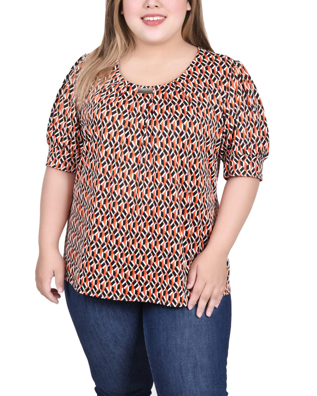 NY Collections Plus Short Sleeve Balloon Sleeve Top
