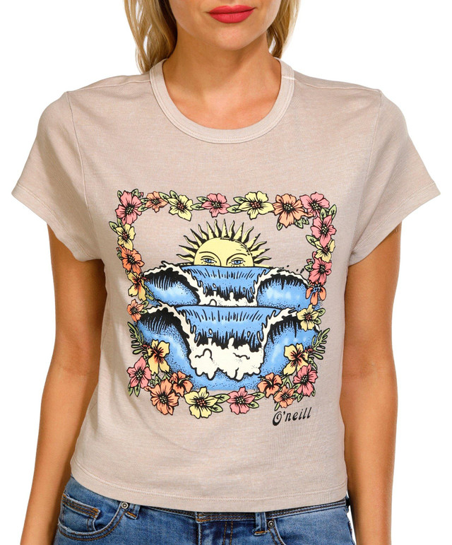 This sweet and stylish Tropical Tide Baby Tee features a soft 100% cotton fabrication, high quality coastal themed screen print graphic on the front, crew neckline, short sleeves and a 18 inch length. Great for casual outings this summer!