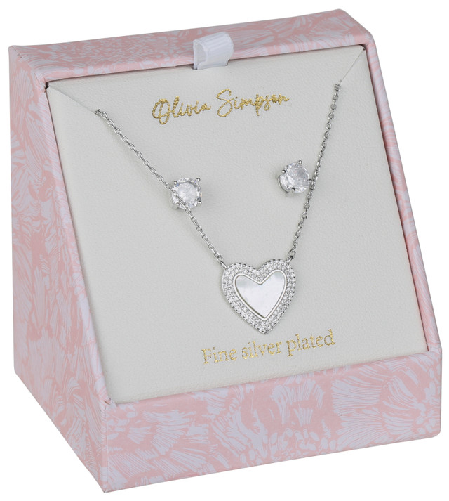 Olivia Simpson Silver Plated Earring & Heart Necklace Set