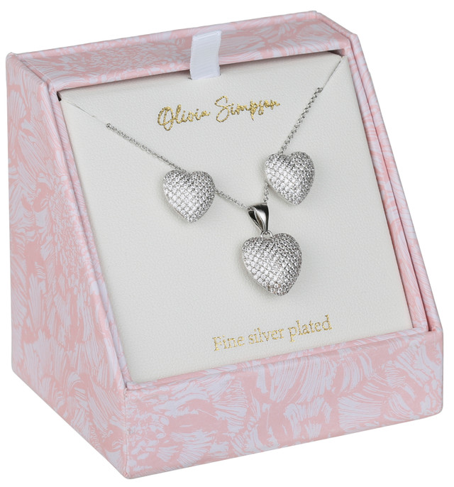 Olivia Simpson Silver Plated Earring & Heart Necklace Set