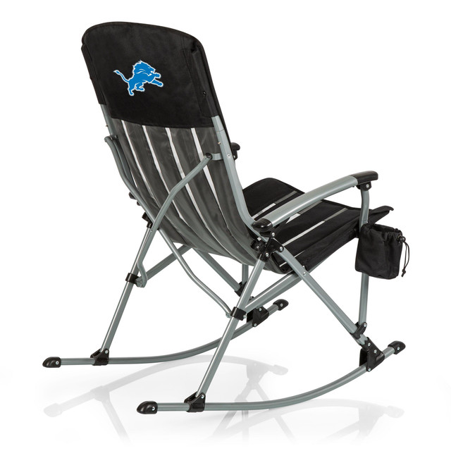 The DETROIT LIONS Outdoor Rocking Chair is the a fan favorate at tailgates and backyard BBQs. Folding rocking chair with mesh cup holder in armrest; Includes carrying bag; Made of 600D PVC with steel frame; Includes: 1 Outdoor Rocking Chair, 1 Drawstring Carrying Bag with Shoulder Strap. Dimensions: 28 x 35.8 x 40.5. Weight limit 250 LBS.