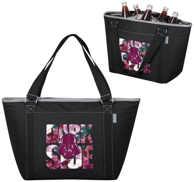 The Topanga cooler tote is made of durable polyester with Disney Star Wars Darth Vader decoration and features a separate exterior pocket. Interior features heat-sealed PVC for no leaks and it is large enough to carry 24 soda cans. Measures: 21'' x 8.7'' x 13''.