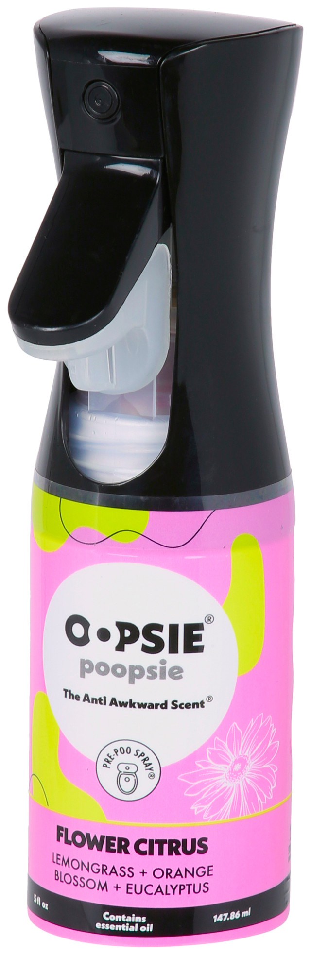 Keep bathroom moments discreet with the 5 oz Flower Citrus Pre-Poo Spray. Blended with lemongrass, orange, blossom, eucalyptus, and essential oils, this fresh citrus floral formula helps neutralize odors instantly. Just spray, poo, and flush for the perfect anti-awkward scent. Light, clean, and effective, it leaves the bathroom smelling bright and refreshed every time.