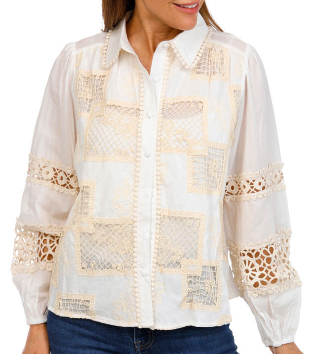 Add timeless texture to your wardrobe with the Womens Long Sleeve Crochet Top. Made from 100% cotton, this soft and breathable top features intricate crochet detailing that brings a feminine, handcrafted look to any outfit. Measuring approximately 22 inches in length, it offers flattering coverage and pairs beautifully with jeans, skirts, or dressy bottoms for effortless style. Perfect for both casual days and polished occasions.