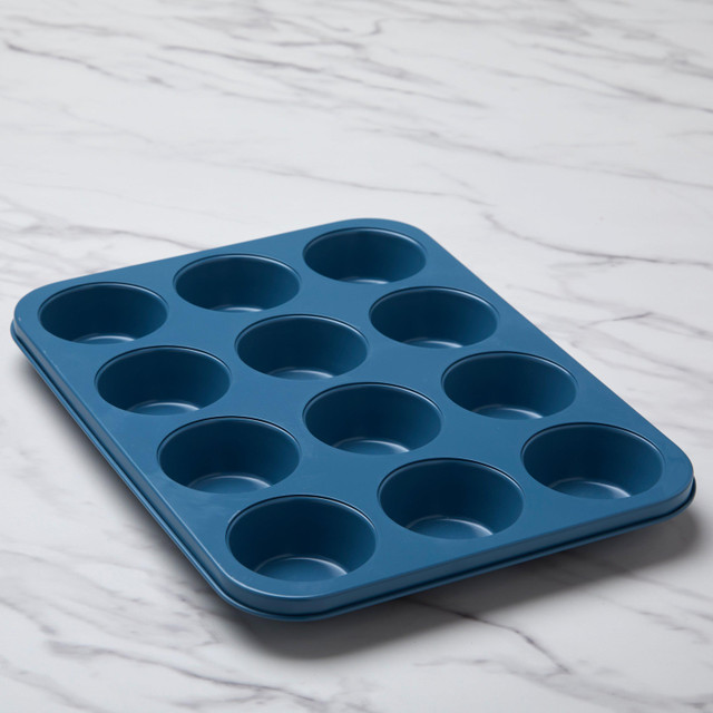 Zest Kitchen + Home produces sophisticated home products and textiles with an international sense of style and quality. This high-quality muffin pan is oven safe up to 450 degrees, features a smooth nonstick coating and is composed of carbon steel for even heat distribution. Measures 10-1/4in x 13-3/8in.