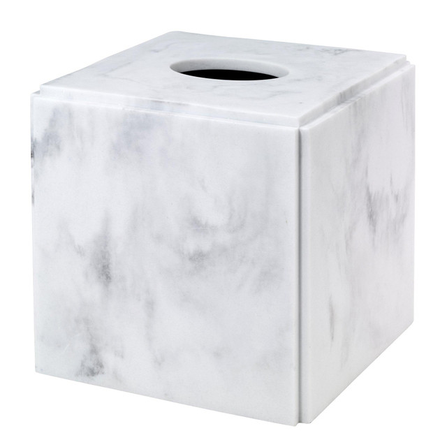 The Avanti Catania Tissue Box Cover features a grey and white marble look in a contemporary, geometric shape. With its beveled edges that give it a crisp, clean look, it's the perfect addition to any room in the house. Made of durable resin for long-lasting use.