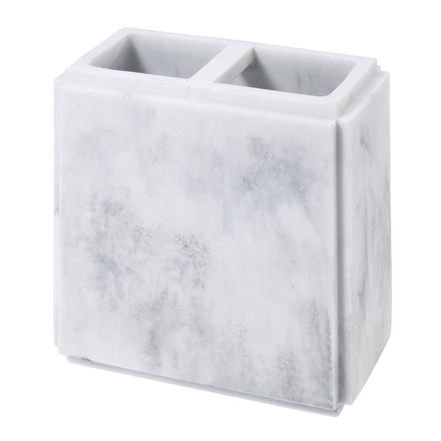 The Avanti Catania Toothbrush Holder features a grey and white marble look in a contemporary, geometric shape. With its beveled edges that give it a crisp, clean look, this piece adds a level of style and sophistication to any bathroom. Made of durable resin for long-lasting use.