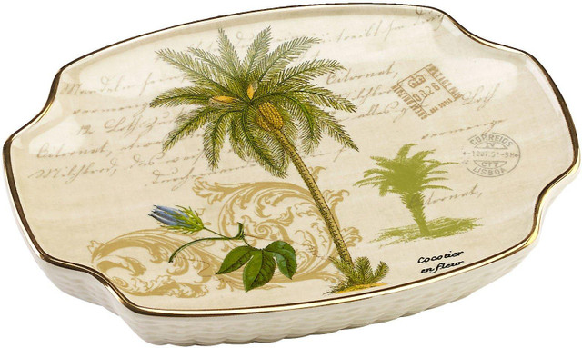 Avanti Colony Palm will add a tropical island vibe to your bathroom with the all over print of palm trees on an ivory background. Soap dish measures: 5.7'' x 4'' x 1''.