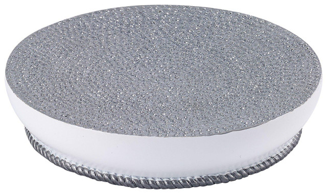 Avanti Dotted Circles Soap dish will add a contemporary flair to any bathroom or kitchen. Dish features grey and blue with metallic accents on a white base in durable resin. Measures: 4.7'' x 4.7'' x 1''.