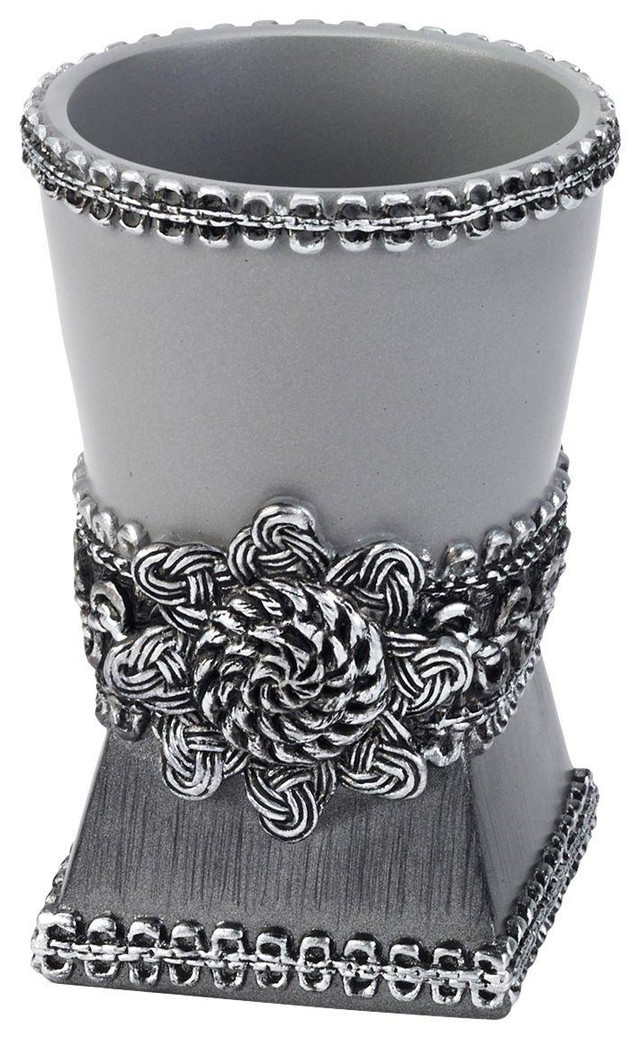 Avanti Braided Medallion Granite Tumbler features a 2-tone body separated by intricately carved braid and medallion. Measures: 2.91'' x 2.91'' x 4.37''.