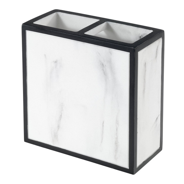 The Avanti Jasper Toothbrush Holder delivers a clean, updated look with a square, marble-look body framed with a thin black line on all sides. Made of durable resin for easy care and long life. Perfect for any bathroom, kitchen, office or any room in the house. Imported. Measures 1.97 in x 4.33 in x 4.33 in.