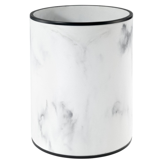 The Avanti Jasper Wastebasket delivers a clean, updated look with a round, marble-look body framed with a thin black line on top and bottom. Made of durable resin for easy care and long life. Perfect for any bathroom, kitchen, office or any room in the house. Imported. Measures 10.00 in x 7.97 in x 7.87 in.