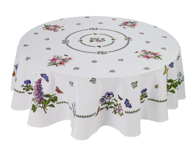 Decorated with beautifully printed colorful flowers with a classic green border, the Portmeirion® Botanic Garden 70 Round Table Cloth is the perfect way to add a touch of elegance and sophistocation to any kitchen or dining room. Measures 70 inches round.