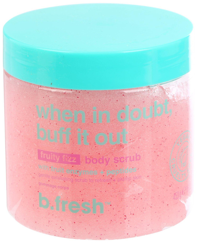This When In Doubt, Buff It Out Body Scrub exfoliating sugar and shea butter scrub helps get rid of dull, dry skin. Fruity Fizz fragrance. Best used within 6 months of opening. Contains 16 fl.oz.