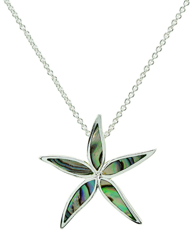 Beach Chic Silver Plated Abalone Starfish Pendant Necklace