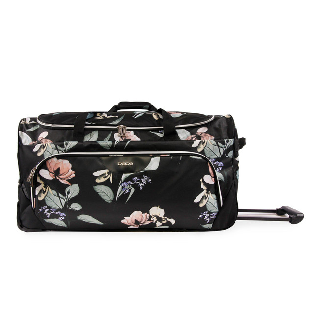 Travel in style with your clothing and other essentials packed inside this chic 30 in. duffel bag by Bebe. With it's spacious main compartment, smooth gliding wheels and stylish prints, you will travel fashionably with ease. Measures 30 in. x 16 in. x 13.5 in.